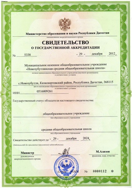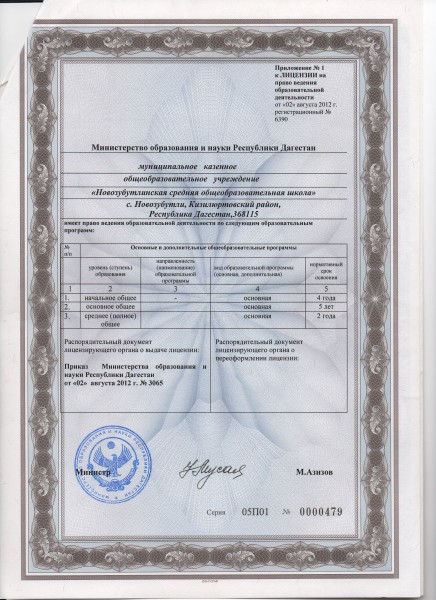 | Адрес местонахождения образовательной организации* | 368115, Республика Дагестан, Кизилюртовский район, селение Новое Зубутли, ул. Али Алиева 3 |